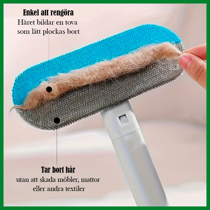 det kraftfulla, återanvändbara och skonsamma verktyget som effektivt avlägsnar hund- och katthår från både golv och möbler. Perfekt för hushåll med både korthåriga och långhåriga husdjur.